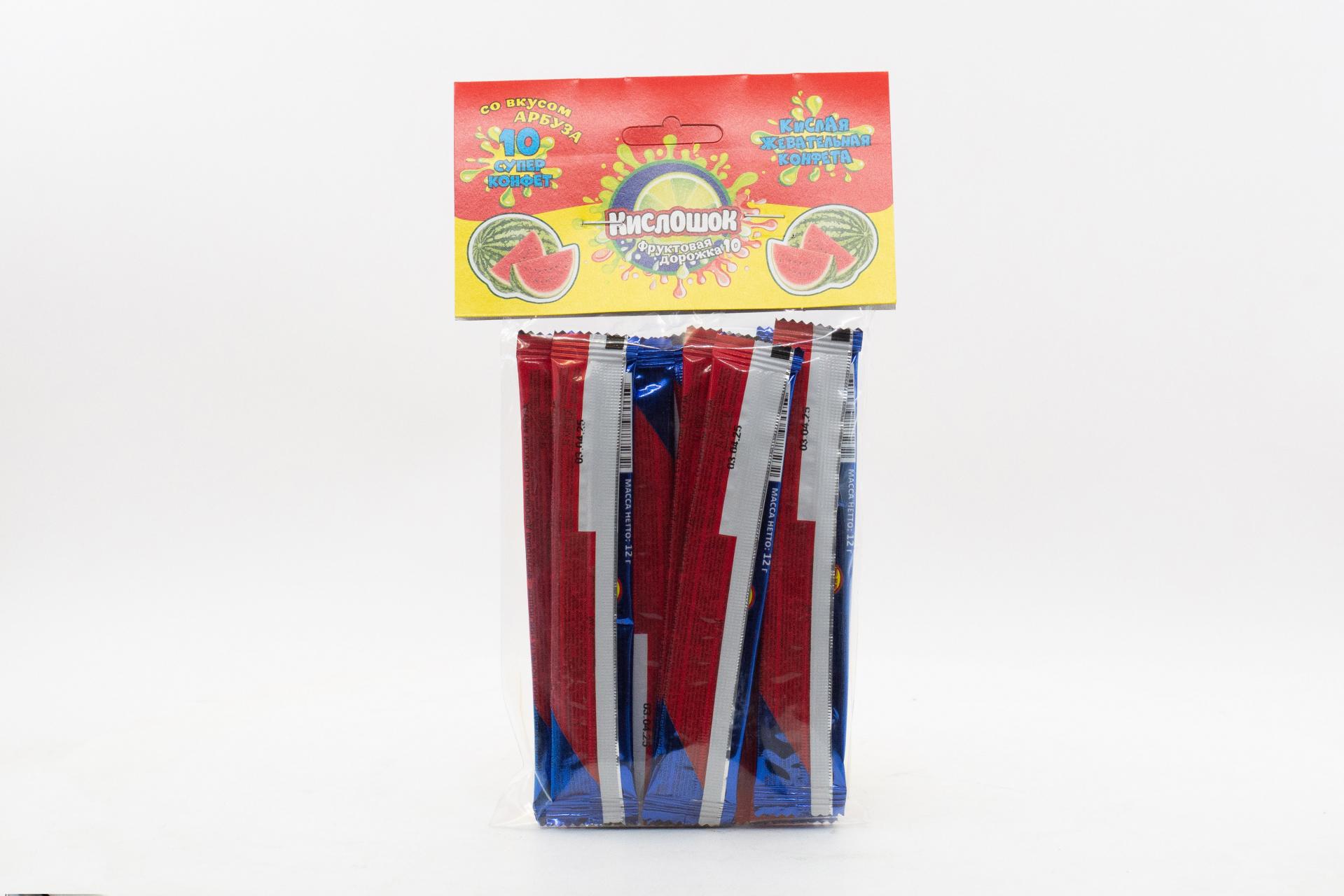 Кислая жевательная конфета Кислошок - фруктовая дорожка 10 со вкусом арбуза (Россия) 120г0,00 руб. за штуку (в упак. 36 шт.) |