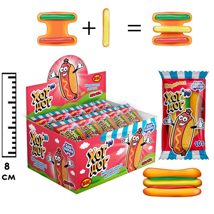 Жевательный мармелад Easy Gammy Хот Дог (Китай) 10г6,13 руб. за штуку (в упак. 48 шт.) |